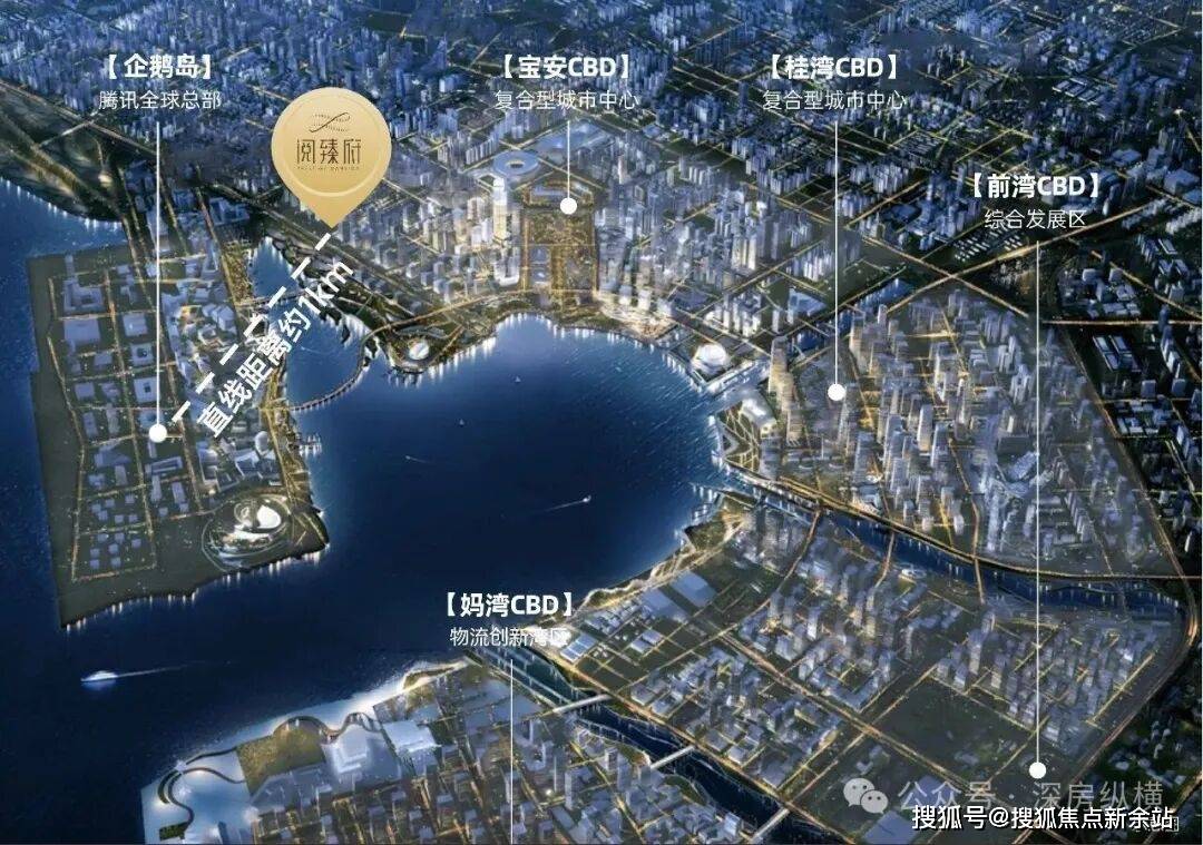 项目对望的腾讯全球总部(简称“企鹅岛”),总投资约319亿元,建面约200万m²,未来可容纳约10万科创精英,将成为湾区互联网科创地标。汇集总部办公、会议中心、科技馆、文化馆、体育中心、K15学校等配套,一期已于2024年底竣工,2025年6月一期已部分交付使用,二期计划2028年建成投入使用。(资料来源:深圳新闻网)